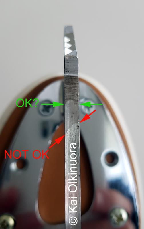 Kuoppa terän etuosassa on usein puhuttu, mutta harvoin täysin ymmärretty ilmiö. Se syntyy yleensä teroituksessa, kun käytetään suurella hiomalaikalla varustettua konetta.